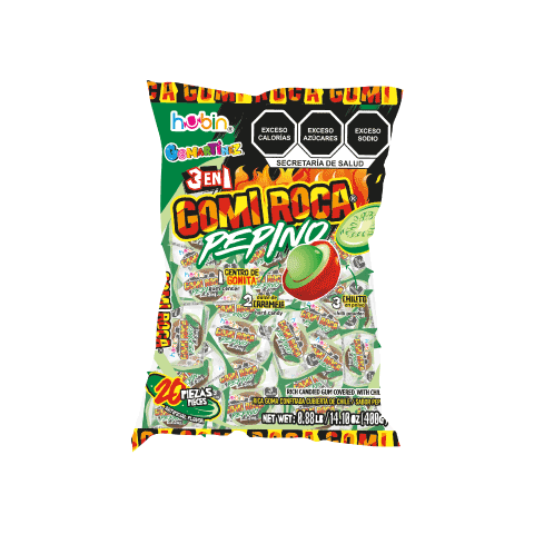 Rica goma confitada cubierta de chile sabor pepino