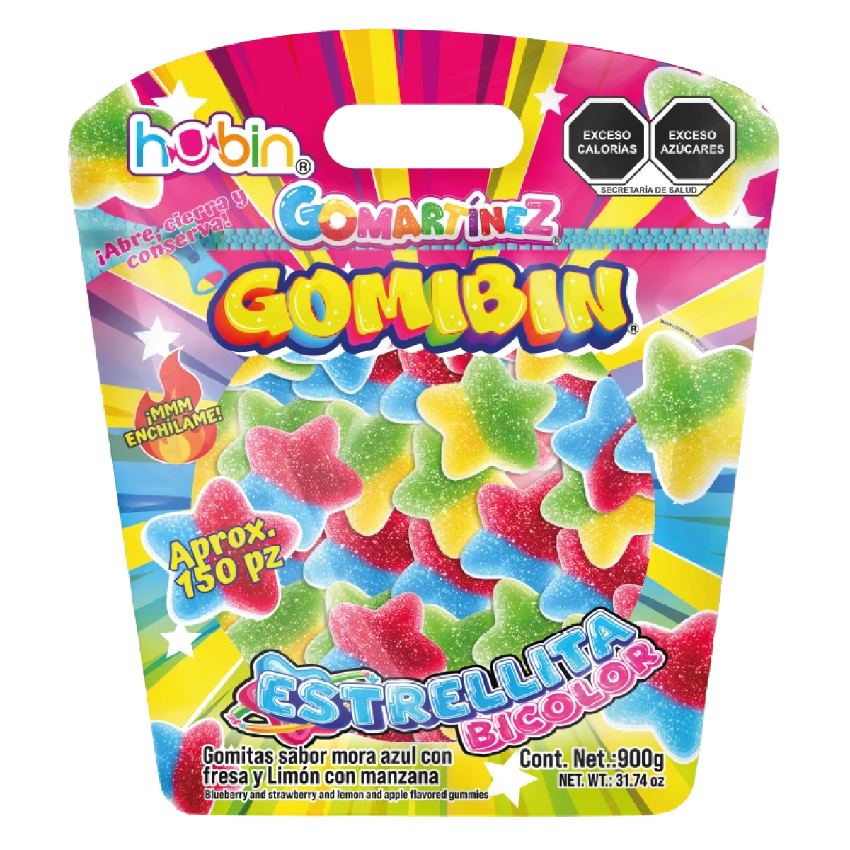 Deliciosa Gomita Sabor Mora Azul y Frambuesa, en forma de estrellita de dos colores